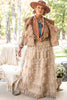 The Procepina Victorian Romance Skirt by Jaded Gypsy is an elegant garment featuring tiers of layered tulle ruffles cascading down to a maxi length and secured by an elastic waist, offering a stunning balance of bohemian and western style. Perfect for a romantic evening out. And I'd be remiss if I didn't mention the completely PHENOMENAL twill lace-up corset that can be worn in the front or back!