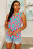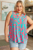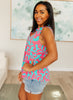 Lizzy Tank Top in Aqua and Pink Filigree