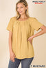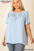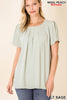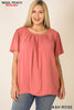 WOVEN WOOL PEACH SHORT SLEEVE ROUND NECK PLEATED TOP