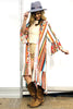 Unleash your wild side with the Genevieve Serape Duster! This boho western-inspired piece has it all—a stunning serape floral print, ruffled sleeves, and a long length that'll leave 'em floored. From festivals to western soirees, you'll be the best-dressed in the room. Yee-haw!