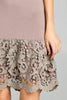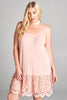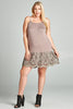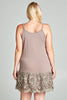 Extensor de vestido de punto liso con cintura caída, tirantes finos ajustables y dobladillo de encaje festoneado. Contraste: 100% Poliéster