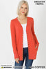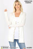 CÁRDIGAN SUÉTER CON BOTONES A PRESIÓN Y BOLSILLOS LATERALES - DETALLE ACANALADO EN ESCOTE, FONDO Y MANGA.