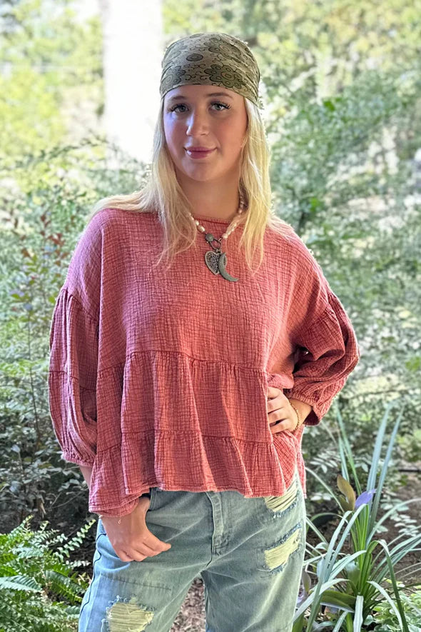 ¡Eleva tu look con el top Alecia On the Rise de Jaded Gypsy! Con un ajuste holgado y de gran tamaño, esta camiseta ligera tiene mangas de 3/4 y está confeccionada con doble gasa de algodón, ¡para que puedas decir adiós a las telas incómodas! Úselo con su falda o pantalón favorito para una apariencia elegante que no obstaculizará su estilo. ¡Yaaas!