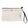 Estas bolsas son de lino de poliéster de color natural que miden 8,5" por 6,5" y vienen con una correa para la muñeca extraíble.