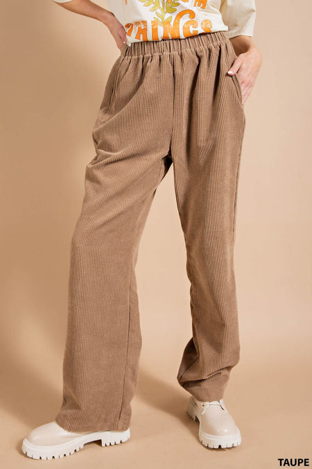 7832 Jessica Soft Corduroy Wide Leg Elastic Waist Pants