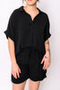 Dress up with attitude (and room to spare) in this Dolman top that has a deep v-neck and a woven knit texture. The oversized fit allows for comfortable movement, while the stitched cuffs add a touch of sophistication. Perfect for when you want to make a statement (without saying a word).
